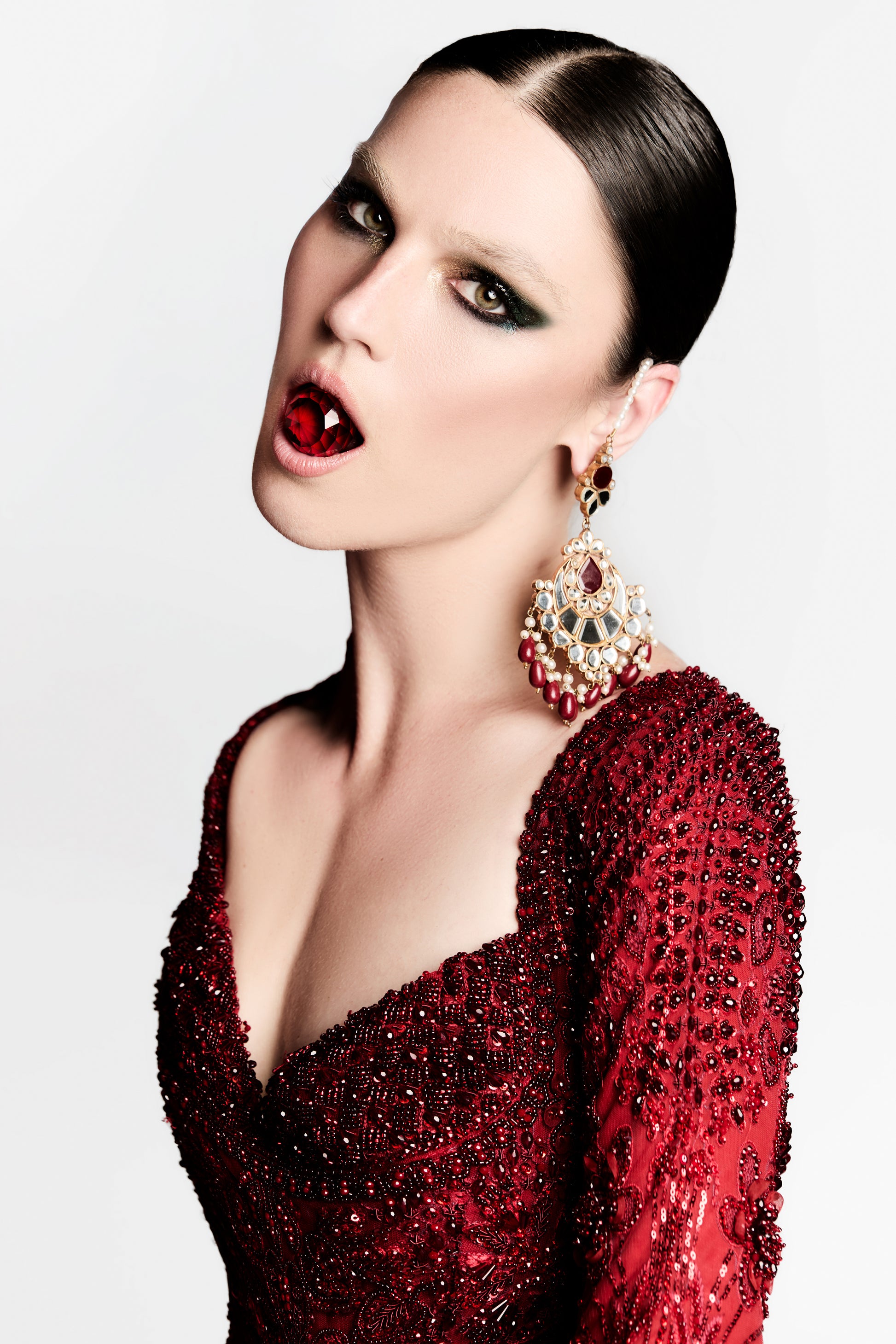 Elysian Rose represents a captivating blend of romanticism and ethereal beauty, its Blood red with a hint of wine. The term "Elysian" evokes a heavenly paradise, suggesting bliss and perfection. Together, they embody a striking bridal gown infused with timeless elegance and allure.